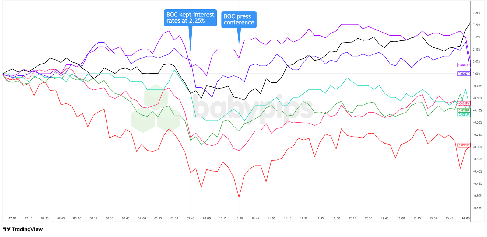 Überlagerung von CAD vs. Hauptwährungen Diagramm von TradingView
