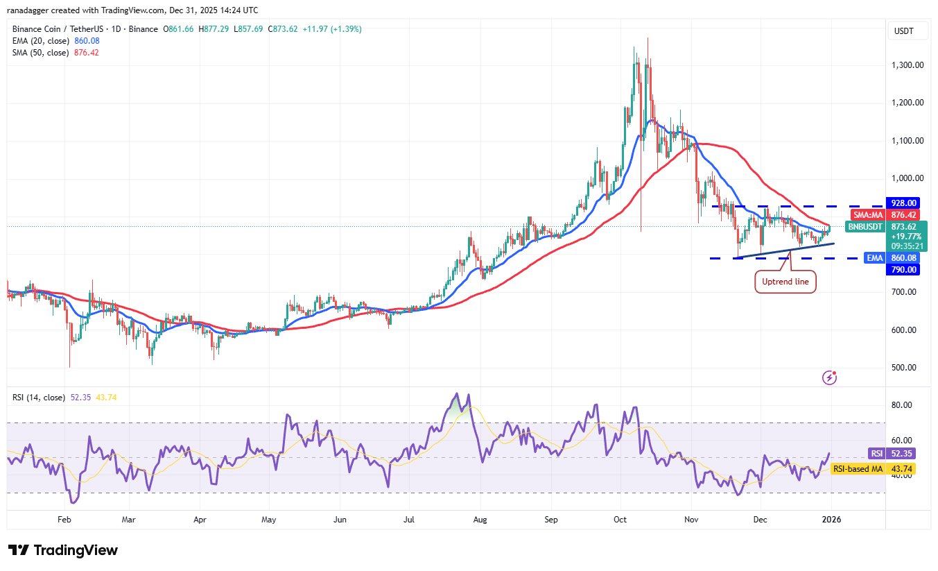Käufer versuchen, BNB voranzutreiben (BNB) über dem 50-Tage-SMA (876 USD), was auf eine höhere Nachfrage hindeutet.