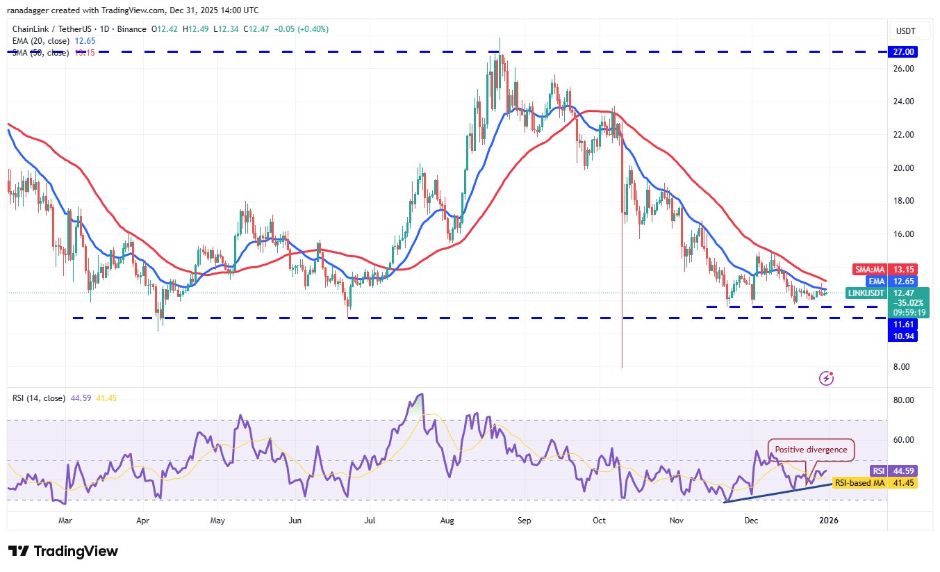 Kettenglied (LINK) wurde in den letzten Tagen zwischen dem 50-Tage-SMA (13,15 USD) und der Unterstützung von 11,61 USD gehandelt.