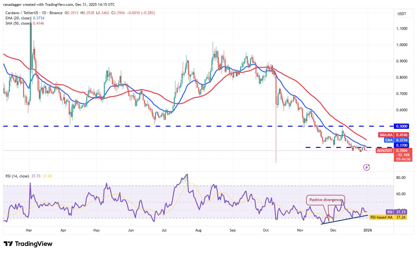 Das erste Anzeichen von Stärke wird ein Durchbruch und Schlusskurs über dem 20-Tages-EMA sein. Das Paar könnte dann auf den 50-Tage-SMA (0,41 US-Dollar) steigen, wo die Bären voraussichtlich eine starke Verteidigung aufbauen werden. Wenn Käufer die Barriere überwinden, könnte der Cardano-Preis das Durchbruchsniveau von 0,50 $ erreichen.