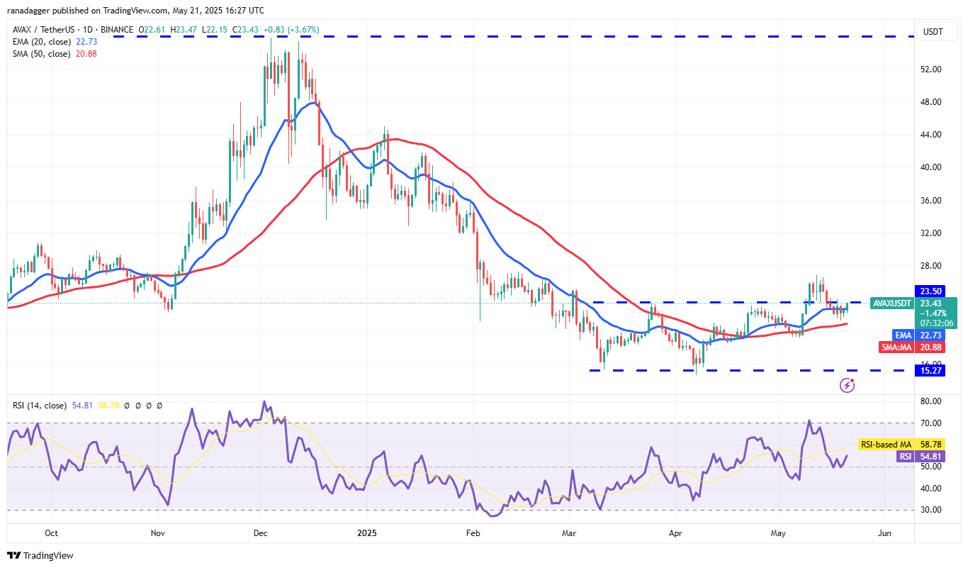 Lawine (Avax) Nutzte Unterstützung bei der 50-tägigen SMA (20,88 USD) und signalisierte, dass die Bullen versuchen, ein höheres Tief zu bilden.