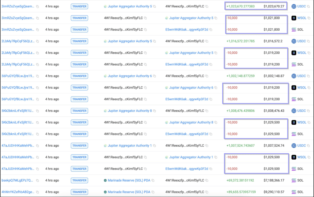 4W1REE UNFAKEL 159.028 $ Sol(16,5 Mio. USD) und 60.000 verkauft $ Sol(6,13 Mio. USD) bei 102 USD vor 4 Stunden.