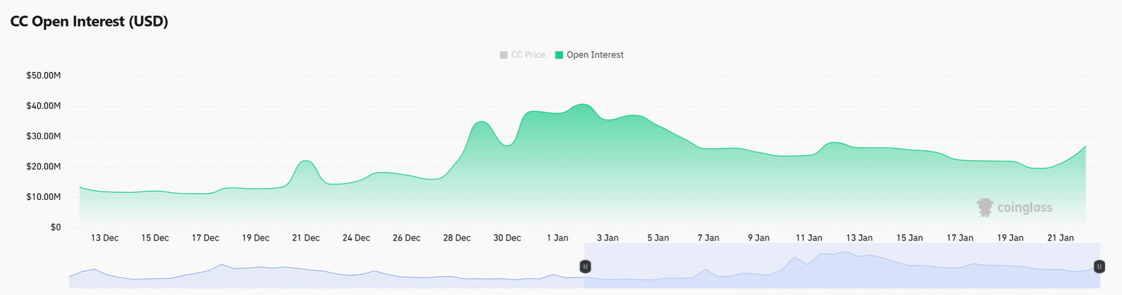 Das offene Interesse stieg um 18,55 % auf 27,0 Mio. US-Dollar, was zeigt, dass die Händler mit steigendem Preis mehr Hebelwirkung hatten.