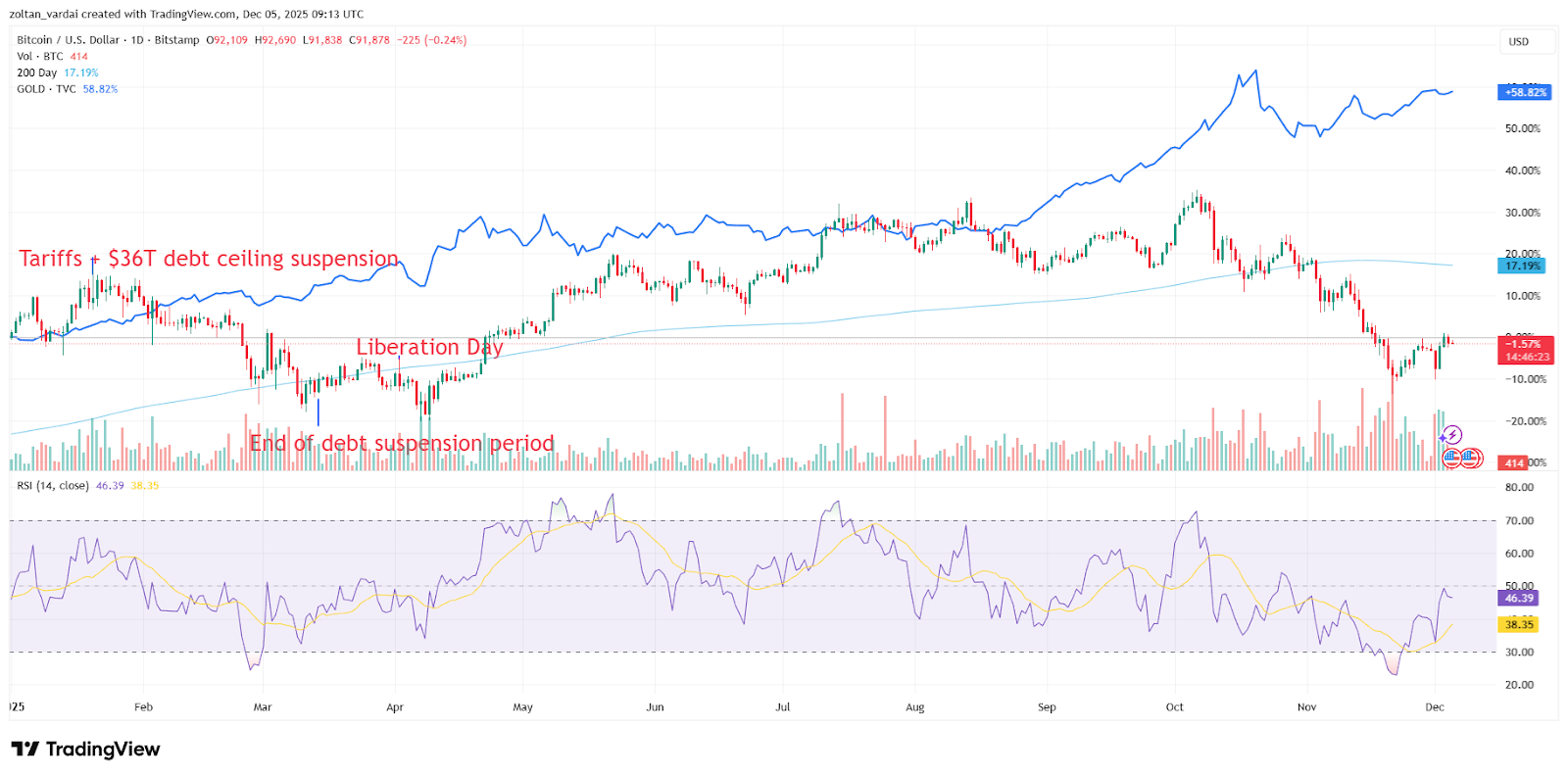 Laut TradingView ist der Goldpreis seit Anfang 2025 um 58 % gestiegen und übertraf damit den Rückgang von Bitcoin um 1,5 % seit Jahresbeginn Daten.