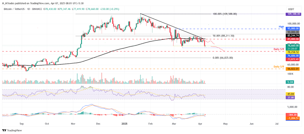 Der Bitcoin -Preis schwankte am Montag nahe 78.600 US -Dollar, ein weiterer Rückgang, nachdem er in der Vorwoche fast 5% verloren hatte. Der Rückgang folgte, nachdem BTC nicht über 85.000 US -Dollar gehalten hatte, ein erhebliches Widerstandsniveau. Am Wochenende fand die Top-Kryptowährung eine vorübergehende Unterstützung von 78.258 US erwähnt in unserem vorherigen Bericht.