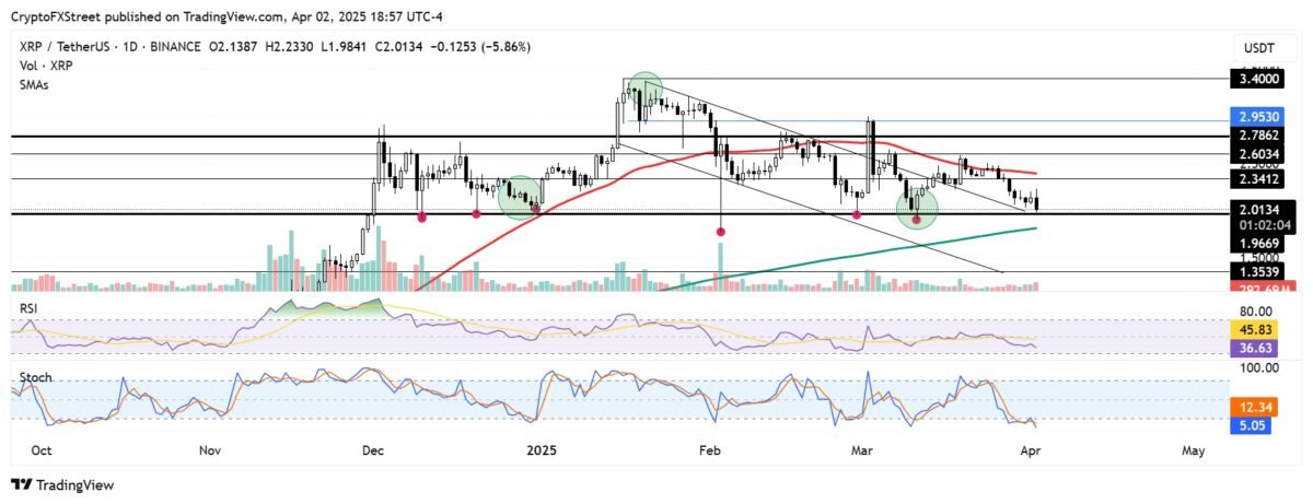 Der XRP -Preis fällt unter 1,90 US -Dollar, Köpfe für das jährliche Tief