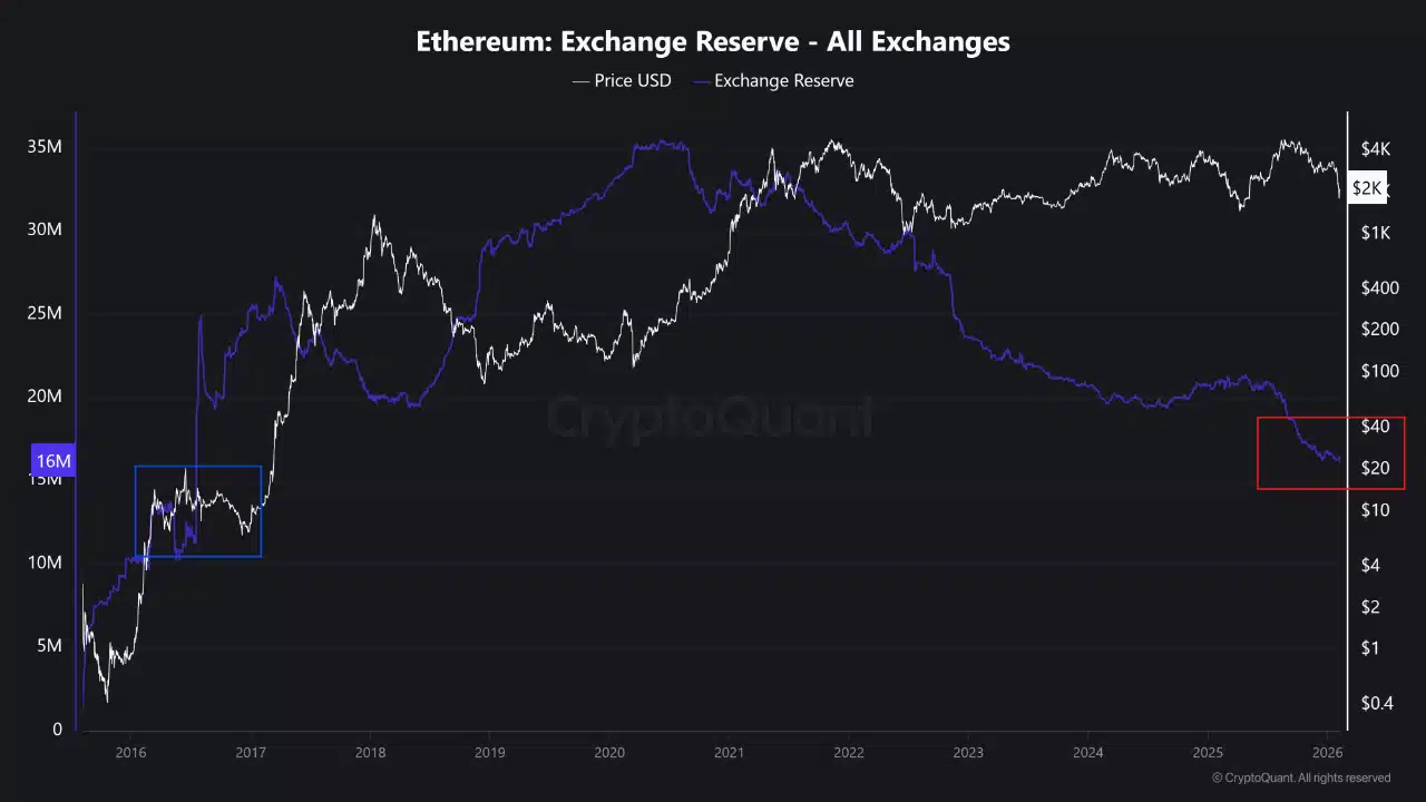 - Ethereum fällt mit einem Börsenguthaben von 16 Millionen ETH.