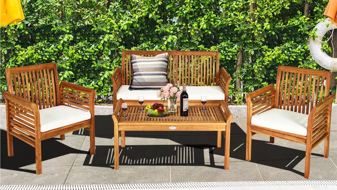 Der Costway 4-teiliges Terrassenset aus Akazienholz ist die perfekte Möglichkeit, den Frühling im Außenbereich Ihres Zuhauses zu genießen. Mit nur 300 US-Dollar ist es im Moment auch der perfekte Preis.