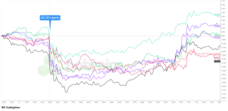 Das britische Pfund, das bereits in den ersten Monaten gesunken war Asiatische Sitzungstark ausverkauft nach den schwächeren Inflationsdaten. GBP/USD fiel innerhalb der ersten Stunde nach der Veröffentlichung um bis zu 0,8 % auf 1,3315 $ und markierte damit den größten Tagesrückgang seit etwa einem Monat.