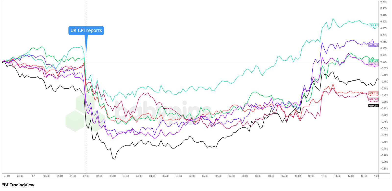 Overlay von GBP gegenüber den wichtigsten Währungen Diagramm von TradingView