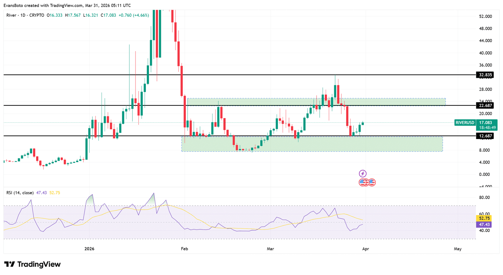 Fluss [RIVER] Die Rallye beschleunigte sich, als der Preis bei Redaktionsschluss um 22,48 % auf 17,12 US-Dollar stieg, während die Marktkapitalisierung 335,65 Millionen US-Dollar erreichte, unterstützt durch einen Anstieg des Handelsvolumens um 45,24 %. Dieser starke Anstieg spiegelt die starke Beteiligung am Markteintritt wider, da die Käufer mit Überzeugung einsteigen.