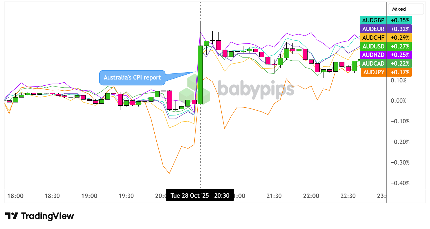 Der australische Dollar, der sich im Vorfeld der Veröffentlichung des CPI-Berichts seitwärts bewegte, legte nach der Veröffentlichung auf breiter Front zu, mit Zuwächsen zwischen 0,17 % und 0,35 % gegenüber den Hauptwährungen.
