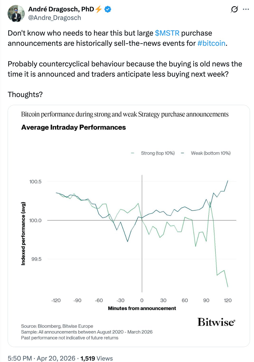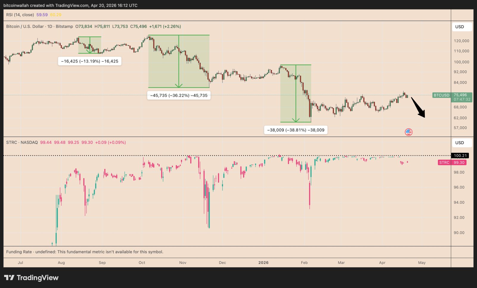 Aber STRC wird seit dem 15. April unter seinem Nennwert von 100 US-Dollar gehandelt, was die Fähigkeit von Strategy einschränken könnte, weiterhin Bargeld zu beschaffen, um diese Woche mehr Bitcoin zu kaufen.