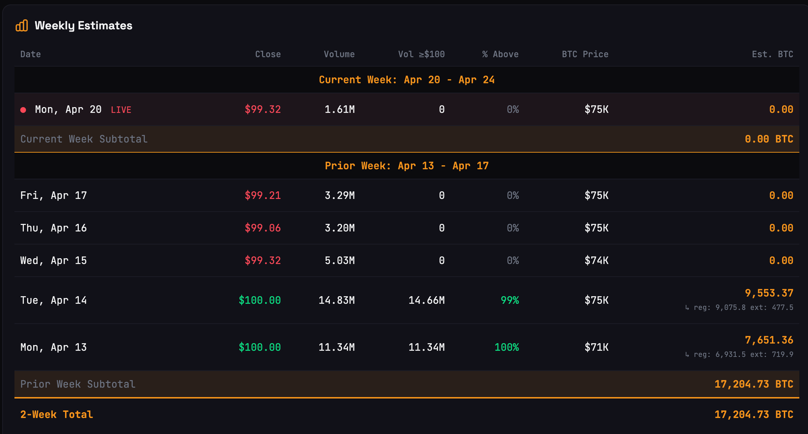 Strategy finanzierte den Großteil seines jüngsten Kaufs von 34.164 BTC über seine Vorzugsaktie Stretch (STRC), die zwischen dem 13. und 19. April durch Aktienverkäufe am Markt über 2,17 Milliarden US-Dollar erwirtschaftete.
