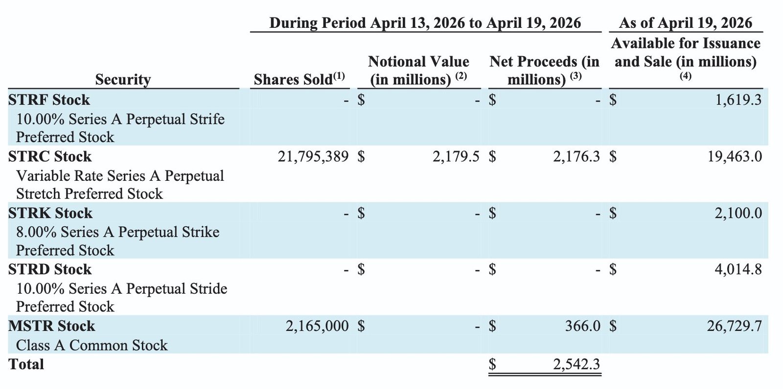 Das machte rund 86 % des Gesamtbetrags aus, während der Verkauf seiner Stammaktien der Klasse A, MSTR, weitere 366 Millionen US-Dollar einbrachte.