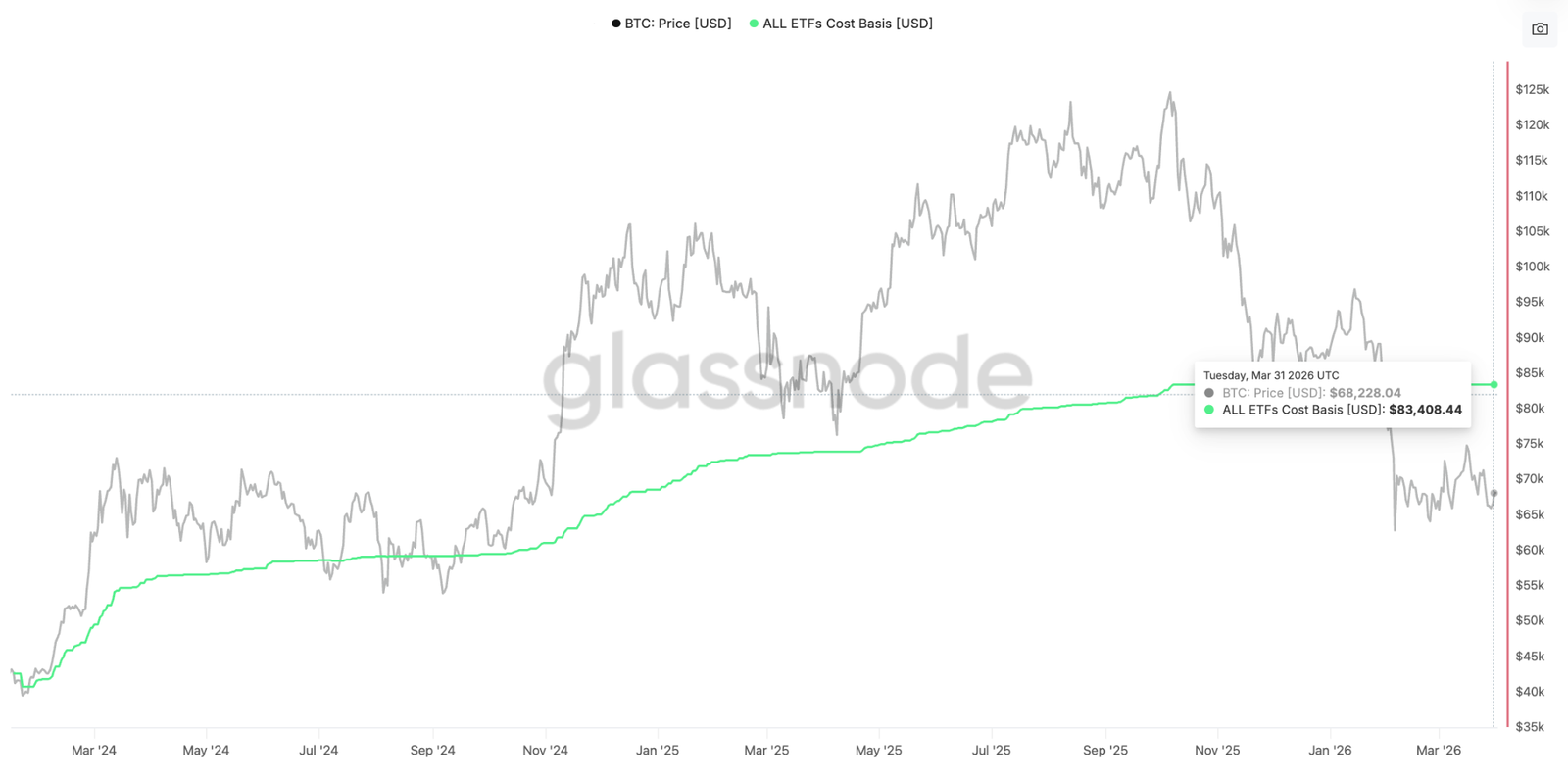 Der Spotpreis von BTC liegt auch unter der durchschnittlichen Kostenbasis der US-Spot-Bitcoin-ETF-Inhaber, die derzeit bei 83.408 US-Dollar liegen, was darauf hindeutet, dass diese Anleger zunehmend unter Druck stehen.