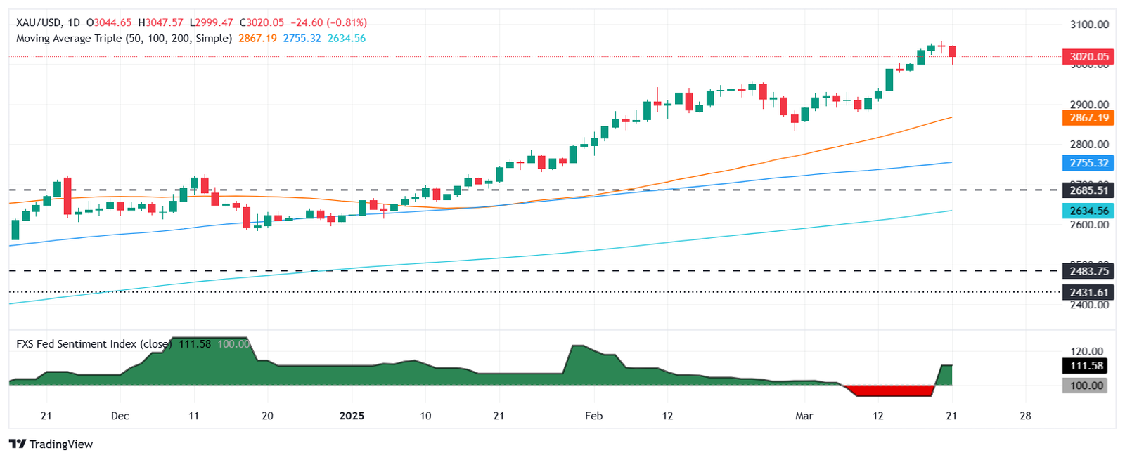 Wenn Xau/USD Ein sinkender Support unter 3.020 US -Dollar wäre die nächste Unterstützung von 3.000 US -Dollar. Einmal übertroffen, wäre das nächste Zinsbereich das tägliche Hochtägliches Hoch von 2.954 US -Dollar, gefolgt von der Marke von 2.900 US -Dollar.