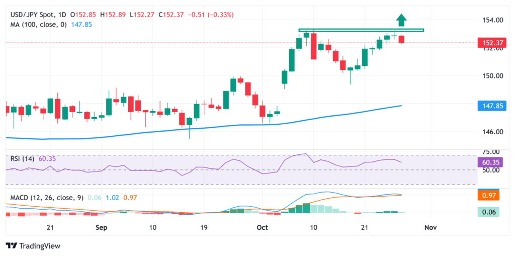 USD/JPY muss weiter unter 152,00 abschwächen, um die Argumente für größere Verluste zu untermauern