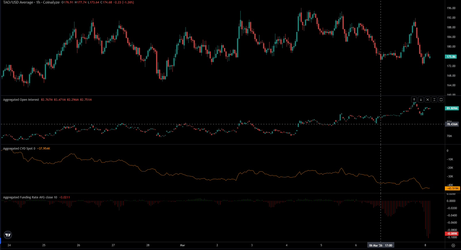 Kombiniert mit dem Bitcoin [BTC] zurückgleiten unter 70.000 $Es wird erwartet, dass TAO als nächstes auf die Tiefststände der 165-Dollar-Marke zusteuert.