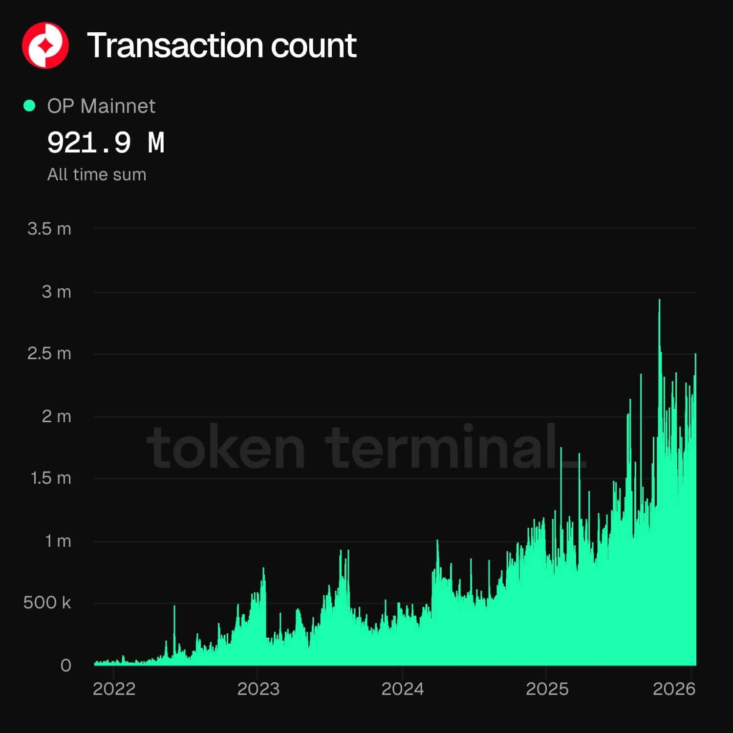 Die Kettenaktivität bei Optimism nimmt seit Anfang 2025 zu und erweist sich seit Beginn 2026 als noch robuster.