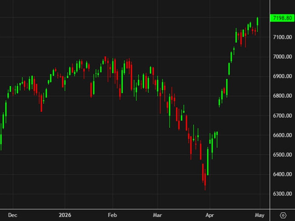 Die größere Bewegung heute ist der Russell 2000, der um 1,9 % zulegte und wohl durch Optimismus über den Iran-Krieg, Monatsendströme oder eine Wette auf die Nachzügler beflügelt wird. Nach einem harten März war es ein erstaunlich guter Monat für Aktien.