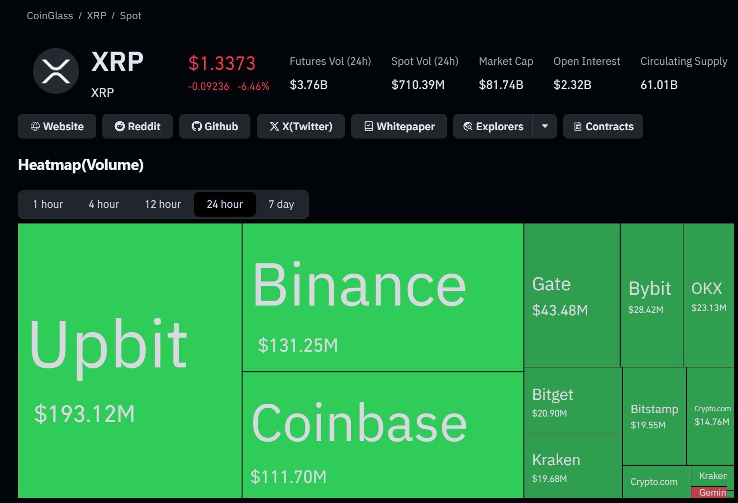 - XRP verzeichnete an drei großen Börsen einen Anstieg des täglichen Handelsvolumens, was darauf hindeutet, dass der Markt seine Preisschwäche akzeptiert.
