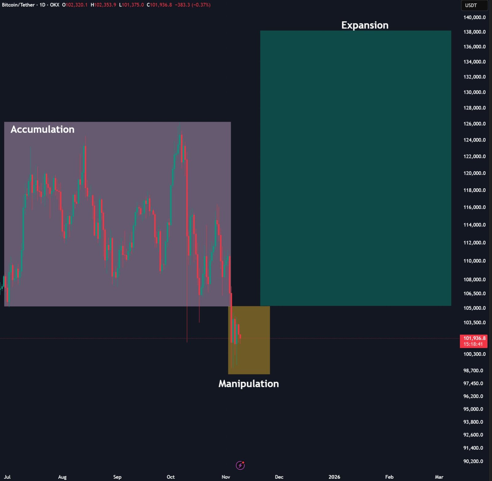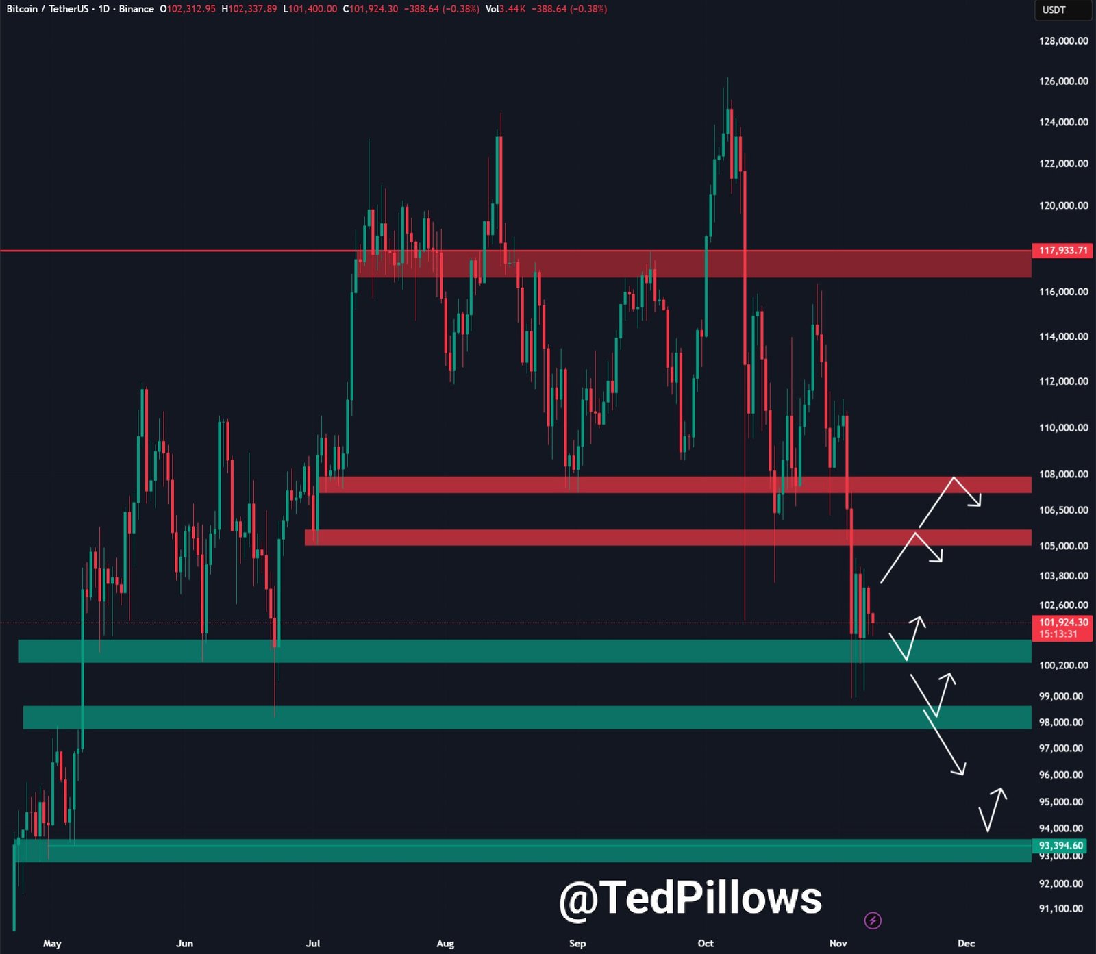 „BTC konsolidiert sich immer noch um die 102.000-Dollar-Marke. Die Märkte erwarteten das Ende des Regierungsstillstands an diesem Wochenende, aber das ist nicht eingetreten“, sagte er angegeben.