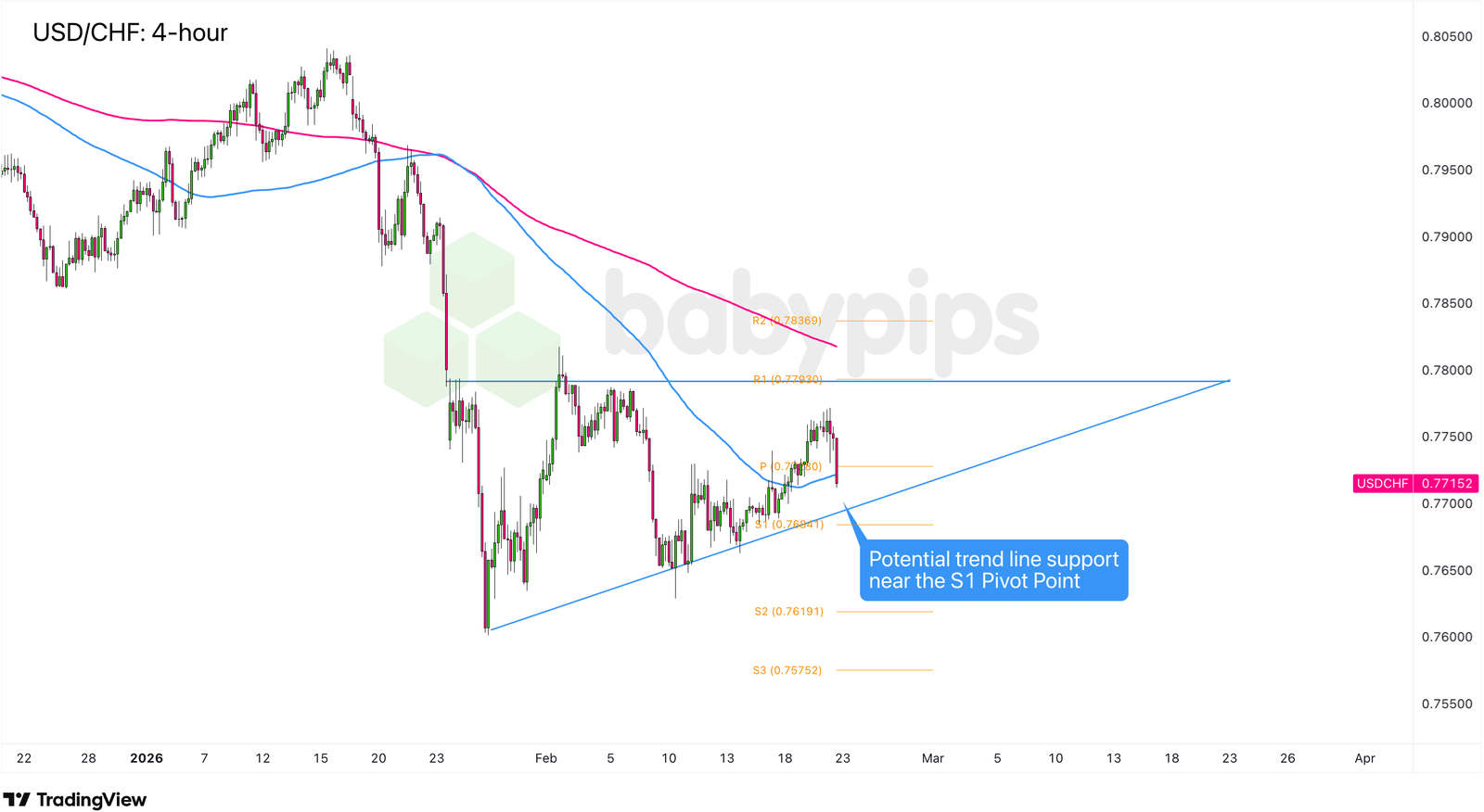 Wenn wir stabile grüne Kerzen und einen anhaltenden Handel wieder über 0,7700 sehen, könnte das Setup wie ein weiterer Abprall von der Unterstützung aussehen und die Tür für eine Bewegung in Richtung der Widerstandszone von 0,7800 und möglicherweise sogar neuer Februar-Höchststände öffnen.