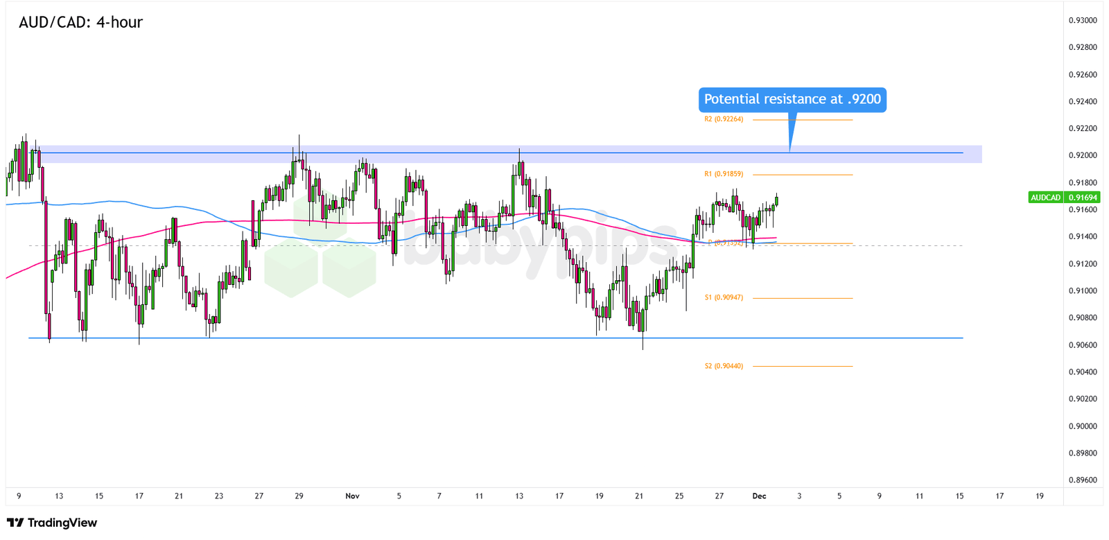 AUD/CAD, das sich vom Bereich von .9075 nach oben erholte, ist nun auf dem Weg, das psychologische Niveau von .9200 und die Spitze eines Spannenmusters zu testen, das die Bullen seit Oktober in Schach hält.
