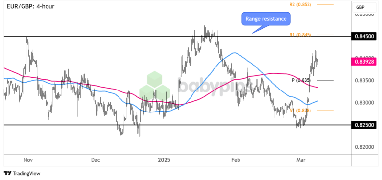 EUR/GBP hat in einer Reichweite, die seit November letzten Jahres stattfindet, in einem Reichweite auf und ab.