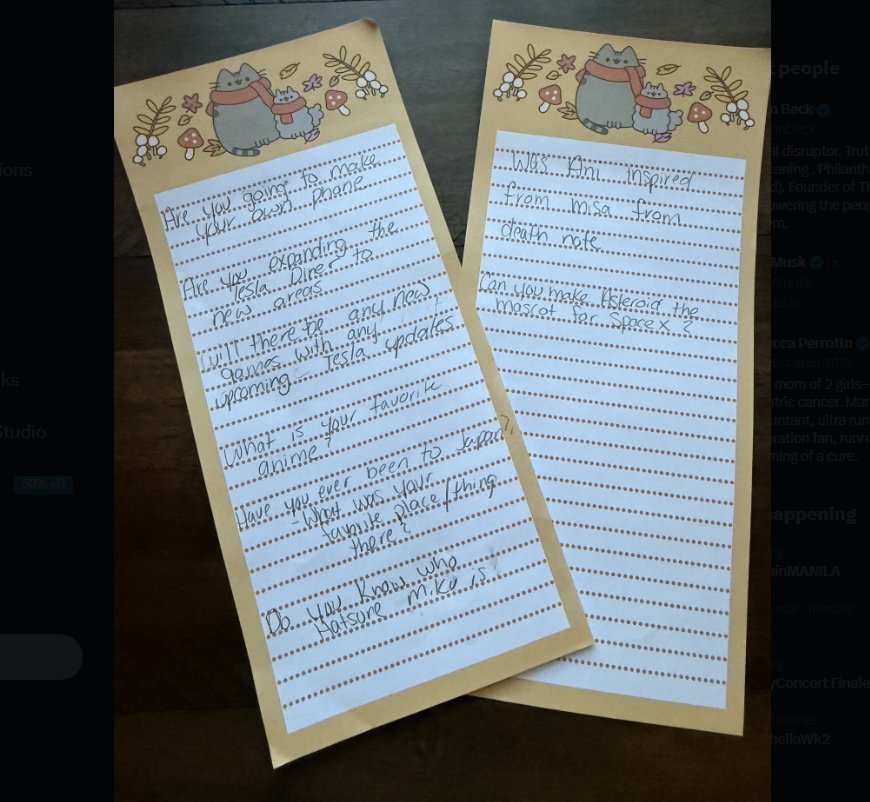Als sie 15 Jahre alt war, war es Liv Perrottos größter Traum, sich kennenzulernen @elonmusk. Sie hatte sogar eine Liste mit Fragen geschrieben, die sie ihm stellen sollte. Ihre Mutter @rebeccaperrotto erzählte mir, dass sie nur wenige Tage bevor sie an Krebs starb, Gelegenheit hatte, mit Elon zu sprechen, aber sie war zu müde und… pic.twitter.com/zTRMreMFhM