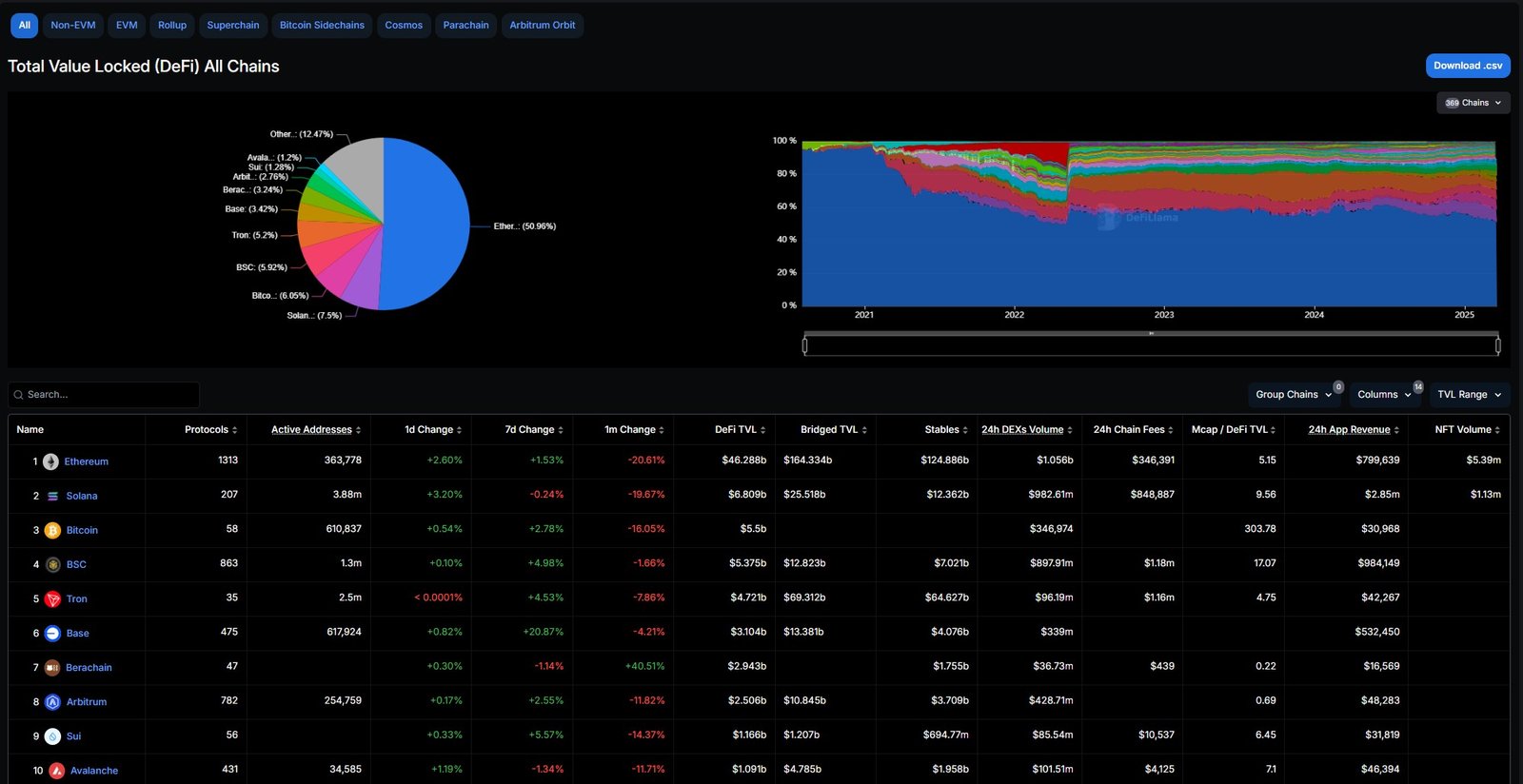 Laut DeFillama liegt der vierte Platz unter Blockchain -Netzwerken in TVL in TVL und blieb hinter den führenden Smart Contract -Plattformen Ethereum und Solana zurück.