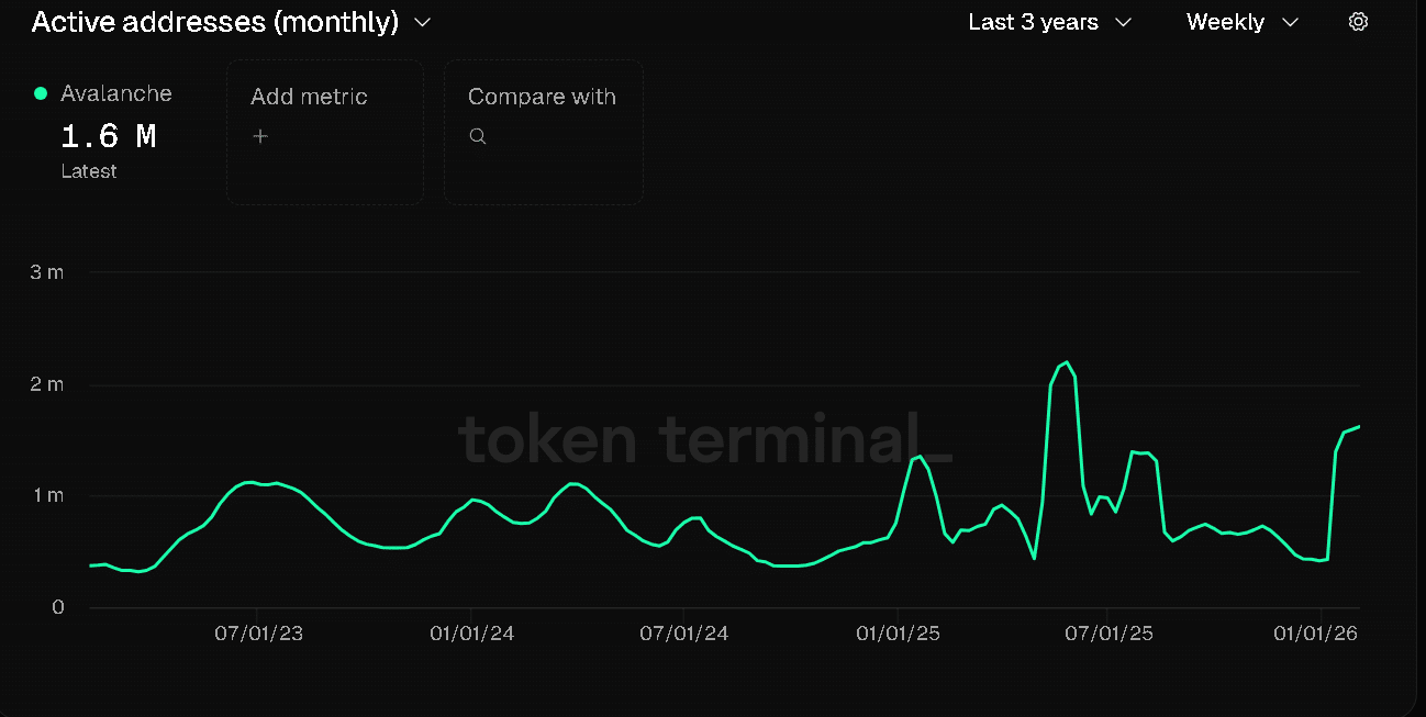 Den Daten von Token Terminal zufolge stiegen die monatlich aktiven Adressen auf über 1,6 Millionen – ein klares Zeichen für ein verstärktes Netzwerkengagement. Am 10. Februar stiegen die Tageszahlen sogar noch weiter an und erreichten Rekordhöhen von über 1,6–1,7 Millionen in der C-Chain.