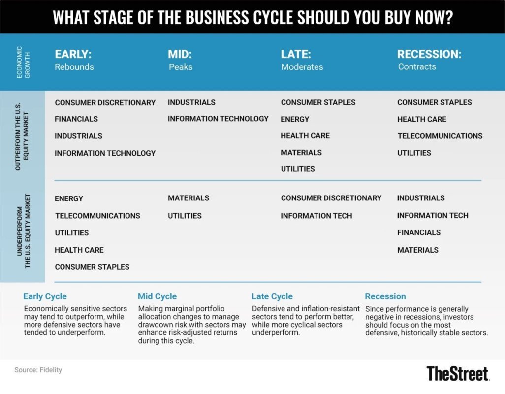 Entsprechend TreueDie Bereiche Forschung, Gesundheitswesen und Energie haben sich in der Vergangenheit in den späten Phasen des Konjunkturzyklus überdurchschnittlich entwickelt und in den frühen Phasen des Zyklus unterdurchschnittlich abgeschnitten.