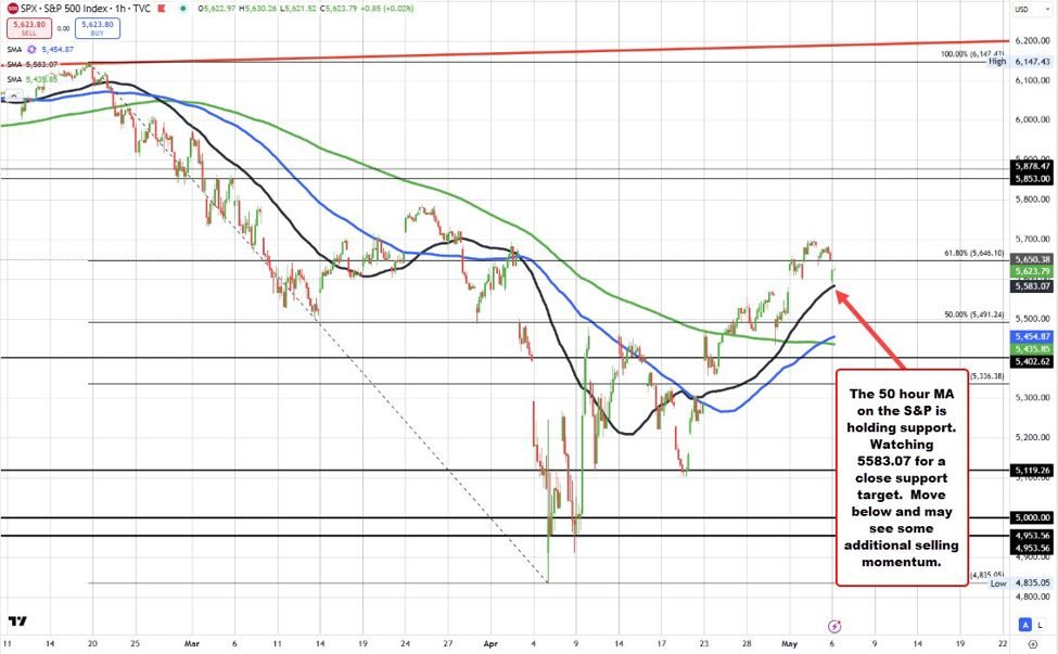 Der Index fuhr in ein Intraday Tief von von 5586.04direkt über dem 50-stündiger gleitender Durchschnitt bei 5583,09