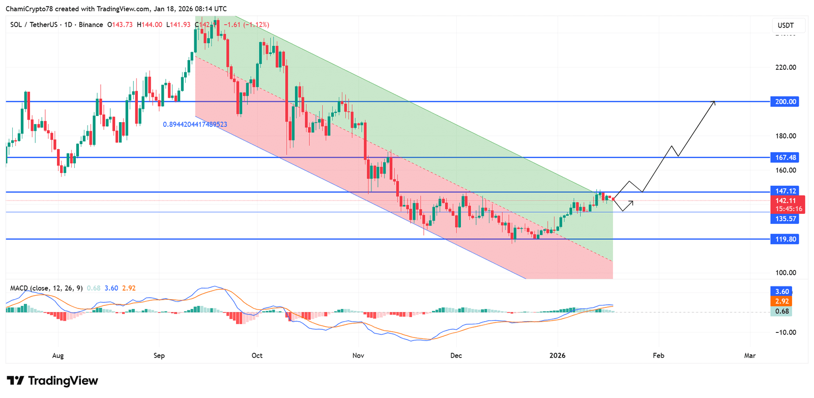 Solana befreit sich von seinem rückläufigen Abwärtstrend
