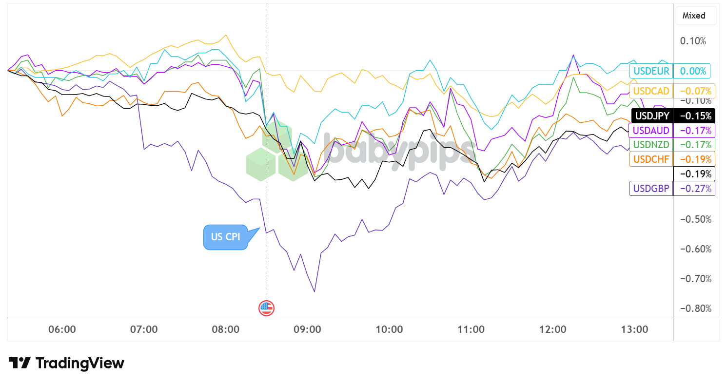 Der Dollar, der sich im Vorfeld der Veröffentlichung des US-VPI konsolidiert hatte und eine leichte Abwärtstendenz zeigte, erlebte zunächst innerhalb weniger Minuten nach Bekanntwerden der schwächeren Schlagzeilen einen Ausverkauf.