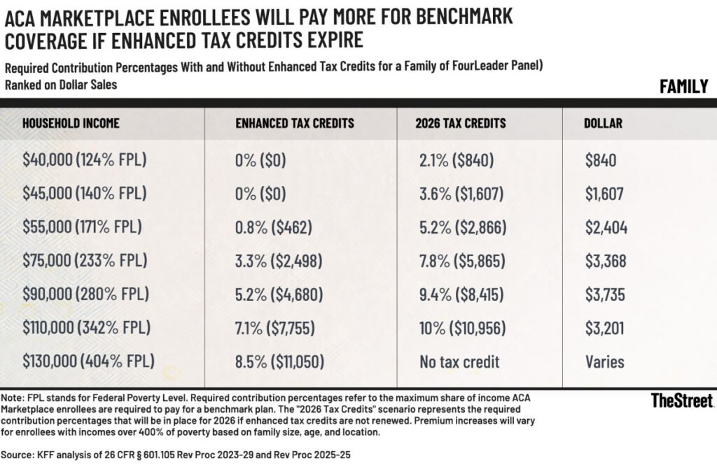 Darüber hinaus enthüllte KFF in seinem Bericht vom 30. September 2025: „Die Prämienzahlungen von ACA Marketplace würden sich im nächsten Jahr im Durchschnitt mehr als verdoppeln, wenn die erweiterten Steuergutschriften für Prämien auslaufen“), wie stark diese Anstiege ausfallen könnten: