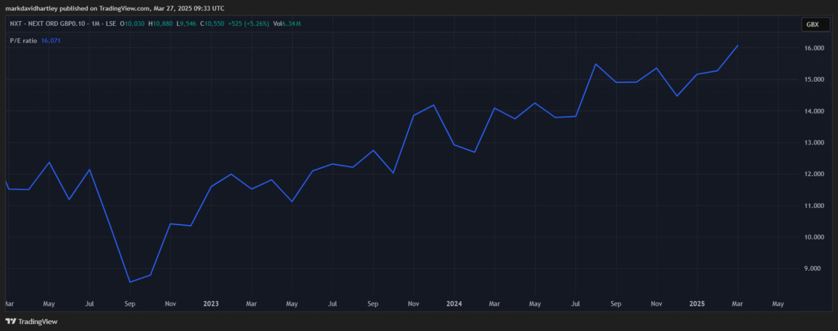 Dennoch bleibt das Risiko von Verlusten aus einem breiteren wirtschaftlichen Abschwung eine Möglichkeit. Es bewegt sich auch in Richtung überbewertetes Gebiet mit einem Preis-Leistungs-Verhältnis von 8,5 auf 16. Erhöhen Marks & SpencerAnwesend Asos Und Debenhams Group.