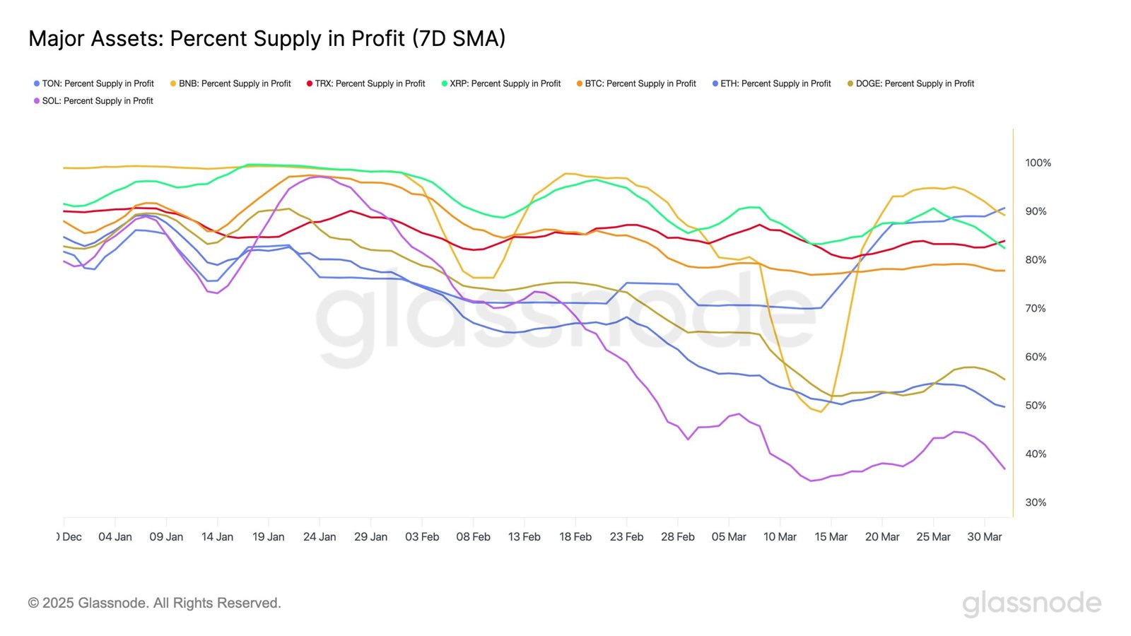 In einem neuen Post Auf X hat das On-Ketten-Analyseunternehmen GlassNode über den jüngsten Trend des Gewinns für die wichtigsten Vermögenswerte im Kryptowährungssektor erörtert.