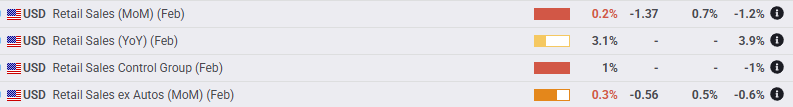 - Die US -Einzelhandelsverkäufe vom Februar erholten sich, aber nicht viel.