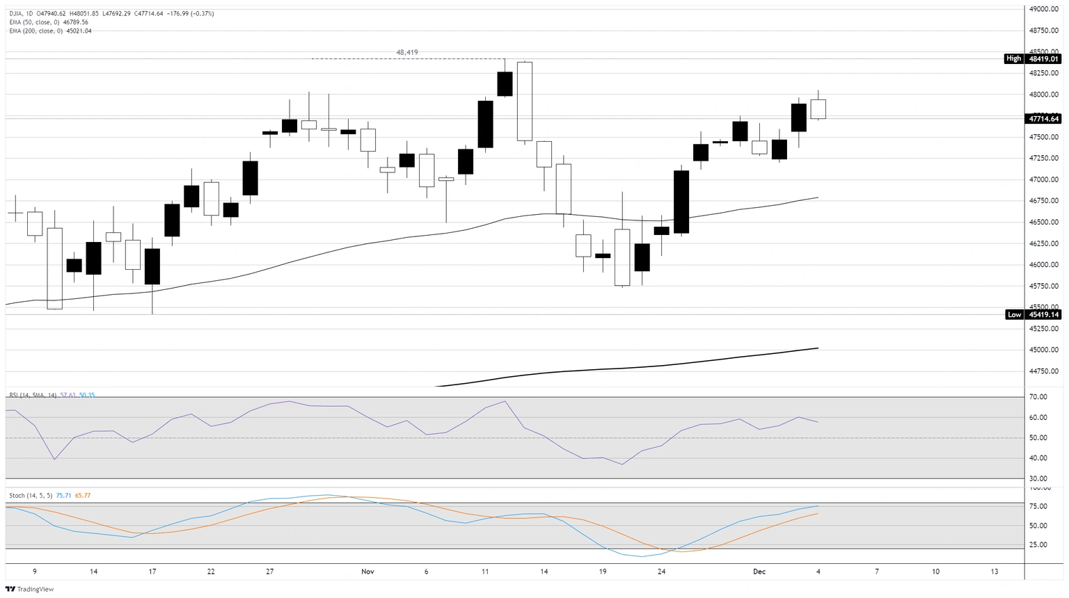 Der Dow Jones Industrial Average (DJIA) drehte sich am Donnerstag in einem engen Kreis nahe der 48.000-Punkte-Marke, bevor er um etwa 100 Punkte zurückging. Die Aktienmärkte legen eine Pause ein und verlangsamen ihre Dynamik in der zweiten Hälfte der Handelswoche, da der Fokus der Anleger weiterhin voll und ganz auf die bevorstehenden Ereignisse gerichtet ist Federal Reserve (Fed) Zinsentscheidung ist für nächste Woche geplant.
