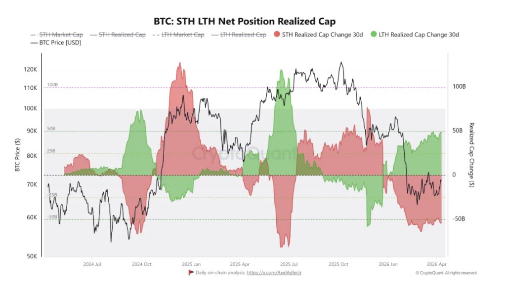 Gleichzeitig langfristige Inhaber bauen die Präsenz in großem Maßstab wieder auf. Dieses Risiko lässt sich anhand der 30-tägigen realisierten Obergrenzenänderung für diese Gruppe erkennen. Diese Kennzahl erfasst den Wert der in die Langzeitlagerung aufgenommenen Münzen und erreichte am 9. April einen Wert von bis zu 49 Milliarden US-Dollar.