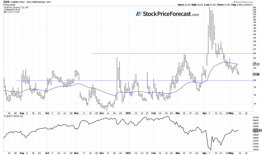 Der Volatilitätsindex, der am Freitag auf ein lokales Tief von 21,83 gesunken ist, wird voraussichtlich bei der heutigen Open erheblich sinken, wenn die Angst nach dem Handelsabkommen nachlässt. Ein VIX unter 20 würde ein erhöhtes Vertrauen der Anleger signalisieren.