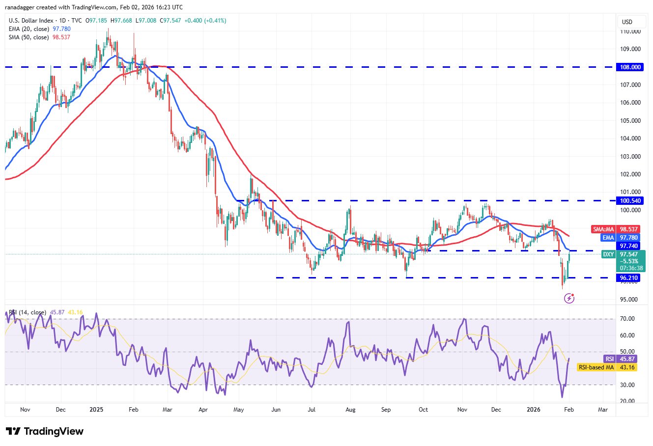 Andererseits deutet ein Durchbruch und Schlusskurs über dem 20-Tages-EMA darauf hin, dass der Durchbruch unter die Marke von 96,21 eine Bärenfalle gewesen sein könnte. Der Index könnte sich dann in Richtung des starren Überkopfwiderstands von 100,54 erholen.