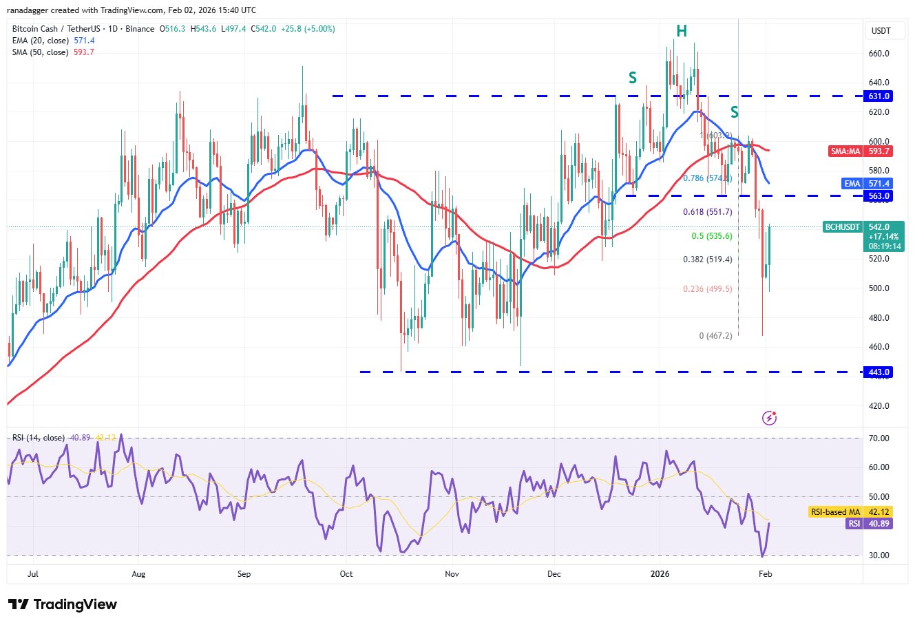 Die Bullen haben eine Erholungsrallye gestartet, die voraussichtlich auf Widerstand in der Zone zwischen dem 50 %-Fibonacci-Retracement-Level von 535 $ und dem 61,8 %-Retracement-Level von 551 $ stoßen wird. Wenn der Bitcoin Cash-Preis von der Widerstandszone abweicht, werden die Bären versuchen, das BCH/USDT-Paar unter 500 US-Dollar zu drücken.