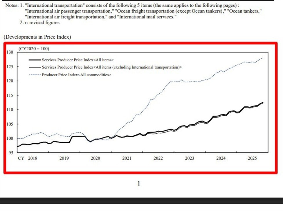 Für den Kontext das neueste verfügbare CSPI Jahr für Jahr Die Zahlen (BOJ-Daten) zeigen einen allgemein erhöhten, aber stabilisierenden Trend bis 2025:
