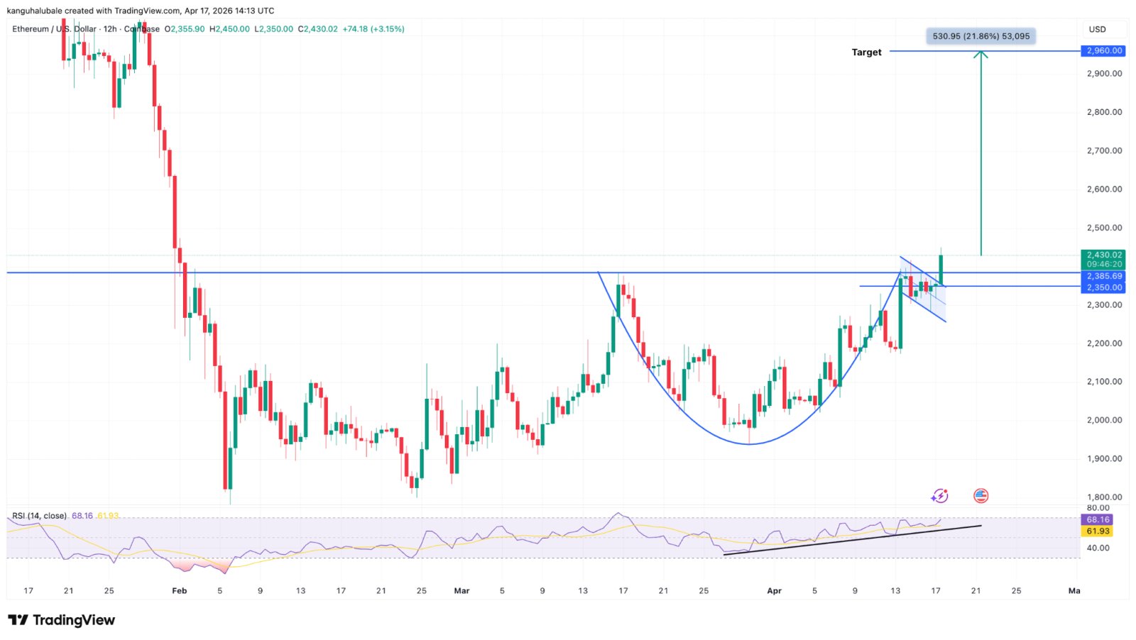 Der Ausbruch auf dem Cup-and-Handle-Chart des Ethers zielt auf 3.150 US-Dollar ab