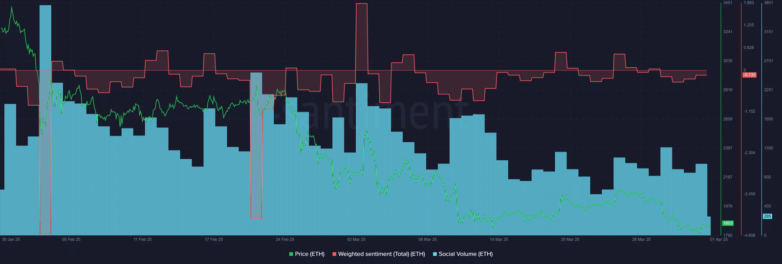 - Die Stimmung von ETH verbesserte sich trotz des positiven Updates nicht viel.