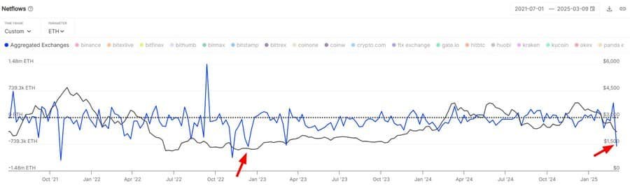 Trotz der Verluste deuten langfristige Trends darauf hin, dass das Vertrauen in die Zukunft von Ethereum wächst, wobei die ETH im Wert von 1,8 Milliarden US-Dollar in der vergangenen Woche die Börsen verlässt.